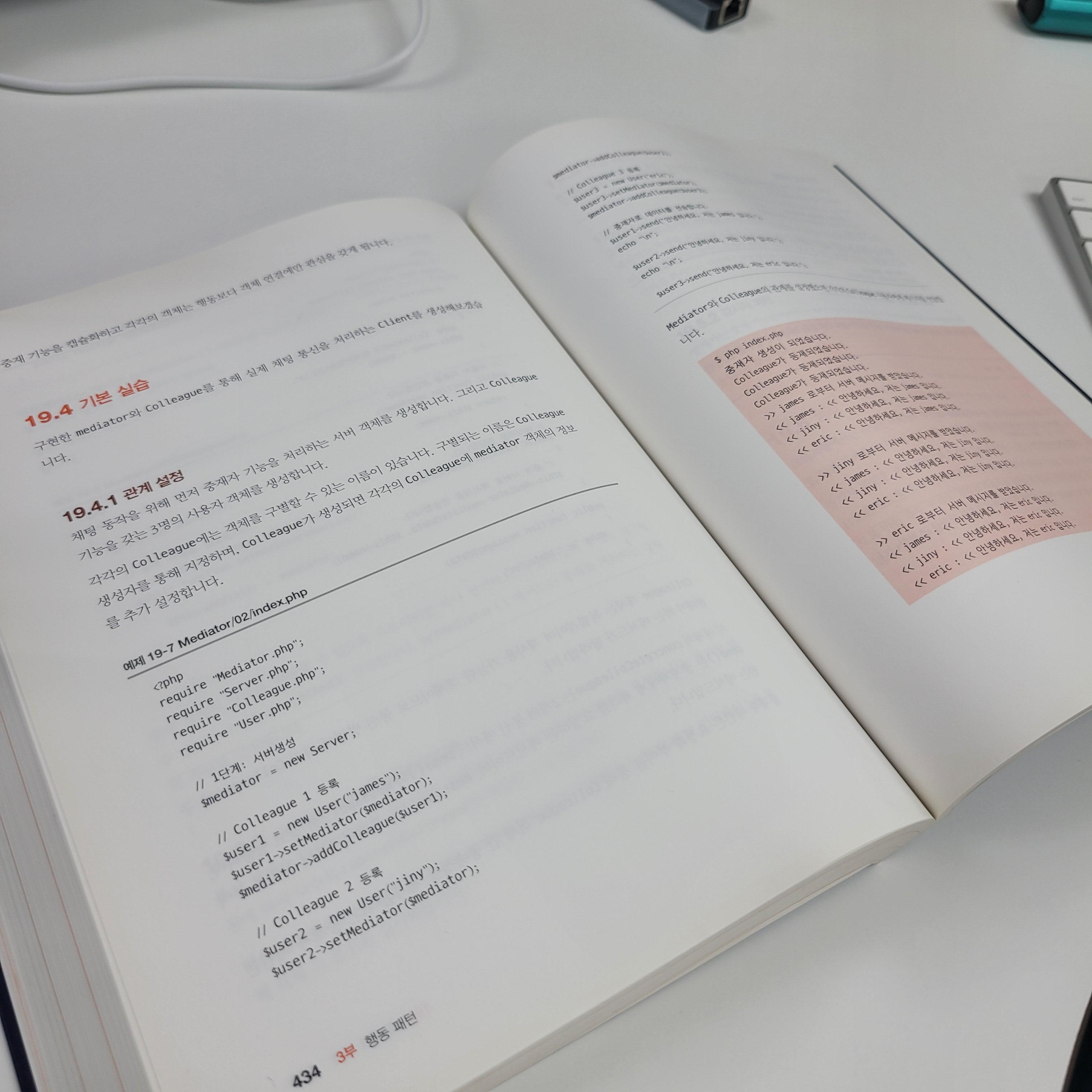 사진과 같이 예제가 PHP 언어로 이루어져 있고, input 및 output이 상당히 잘 나와있어서 한눈에 보며 이해하기 쉬웠습니다. 이 책은 누구나 이해할 수있는 쉬운 예제와 눈높이를 낮춘 설명으로 디자인 패턴을 배우고 학습하고자 하는 PHP 주니어 개발자들에게 추천드리며 객체지향을 이해하고, 프레임웍 학습을 하려하는 개발자들에게 유익한 가이드가 될 것이라고 생각합니다.
