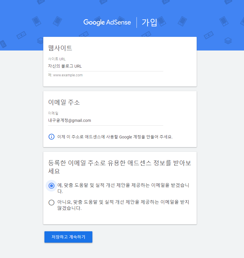 하나. 구글애드센스 사이트에서 계정을 생성한다.