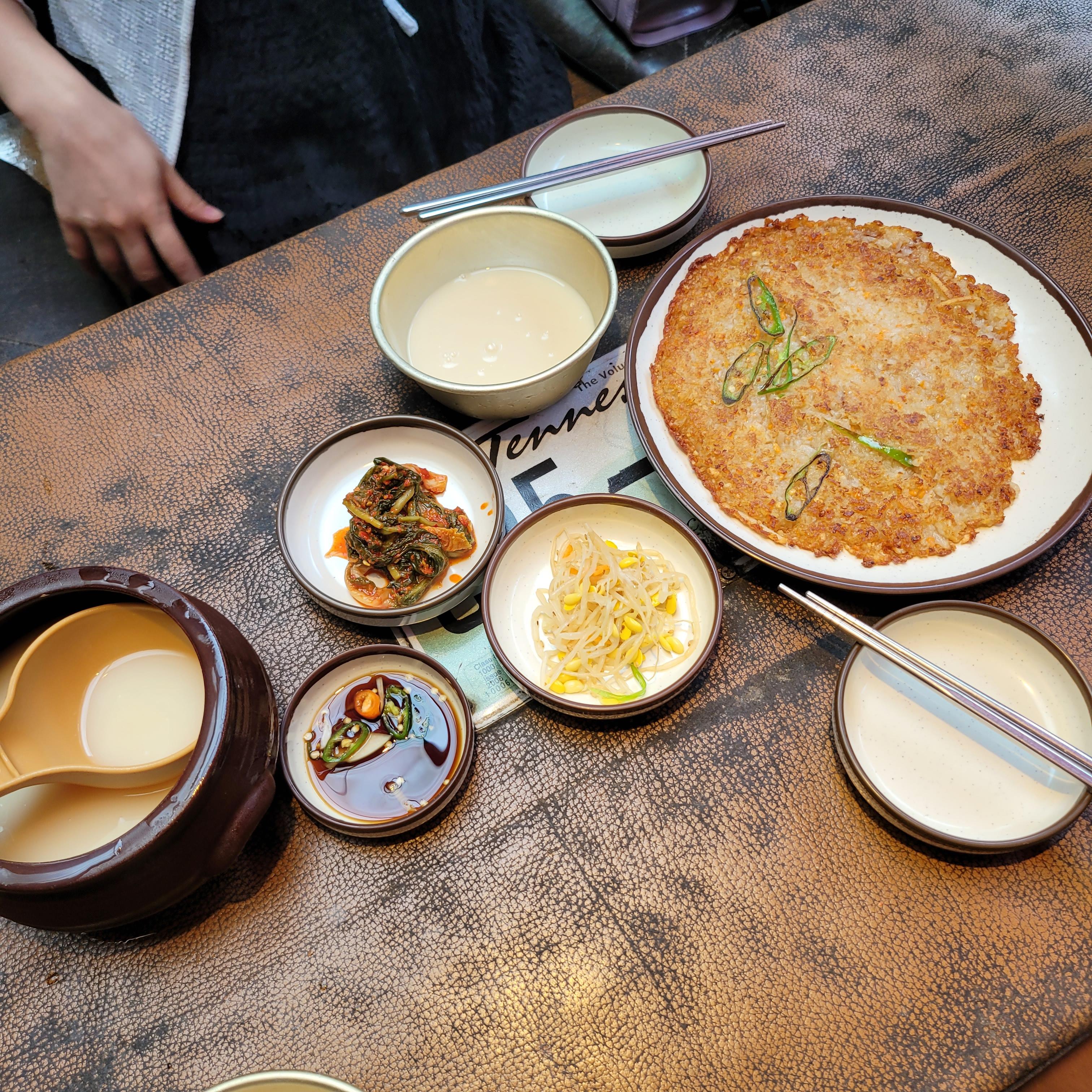저희는 1차에서 배불리 먹고 왔기 때문에 [감자전 - 찹쌀 동동주]를 주문하였습니다. 감자전은 테두리는 바싹 구워져서 정말 맛있었지만 중간 부분은 식감이 썩 좋지 않았었는데 알고 보니 처음 주문할 때 "빠싹 구워달라"라고 이야기해야 전체 부위를 바싹 구워주는 프로세스인 것 같습니다. 찹쌀막걸리 맛은 정말 좋았습니다.