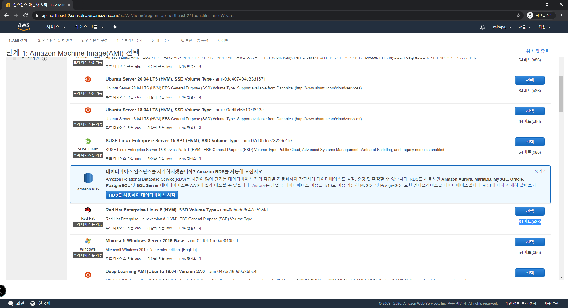 - Amazon Linux를 선택해도 무방. 원하는 서버 환경을 선택하세요.