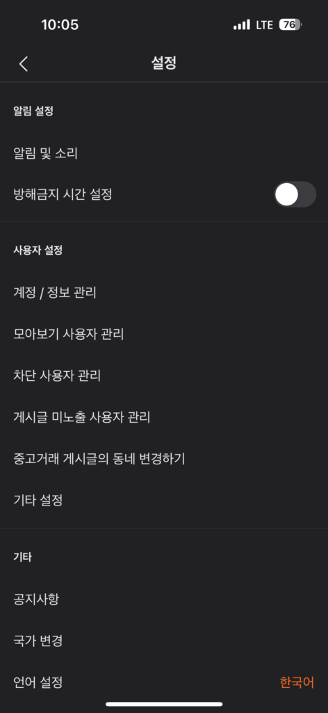 오마주는 당근마켓 설정화면을 기준으로 하였다.