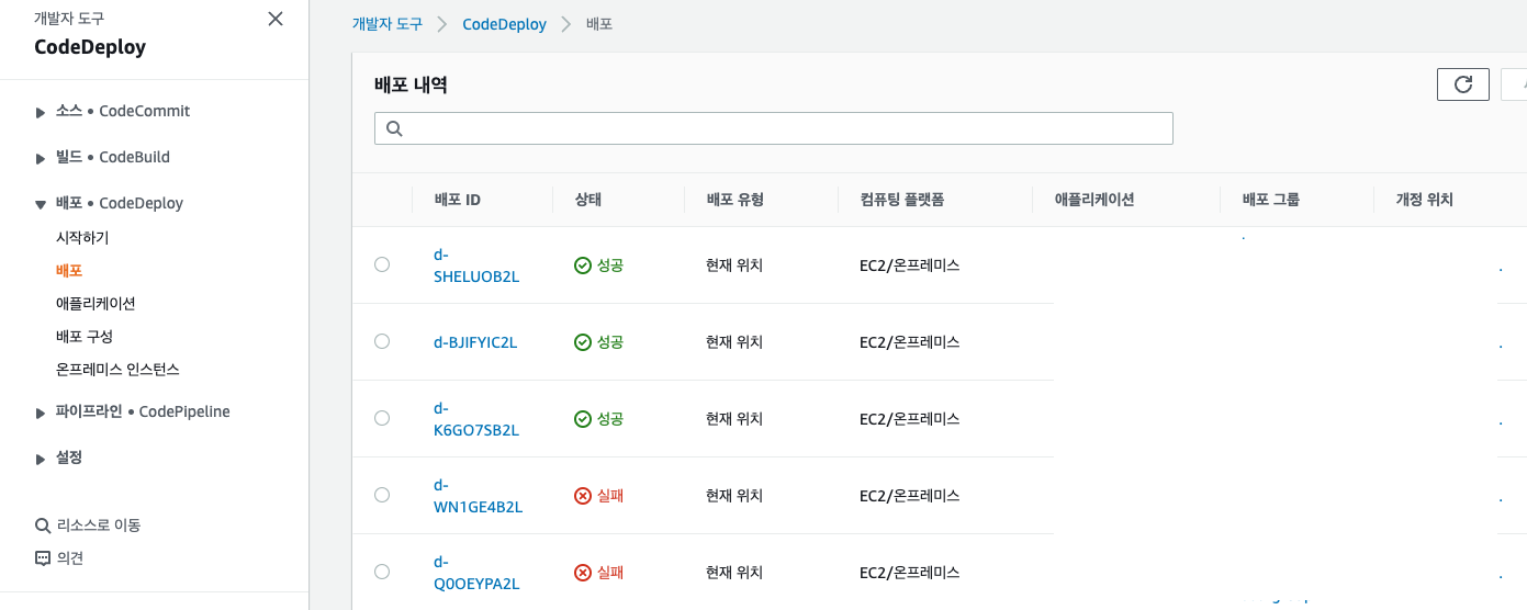 AWS Codedeploy로 배포를 진행하던 도중 전에는 잘만 진행되었던 배포가 에러가 나는 현상이 발생했다. 기존에 애플리케이션 및 배포 그룹 설정까지 잘 설정해줬기 때문에 이런 일이 전혀 없을 줄 알았는데 갑자기 배포 작업이 "실패당해서" 당황했다.