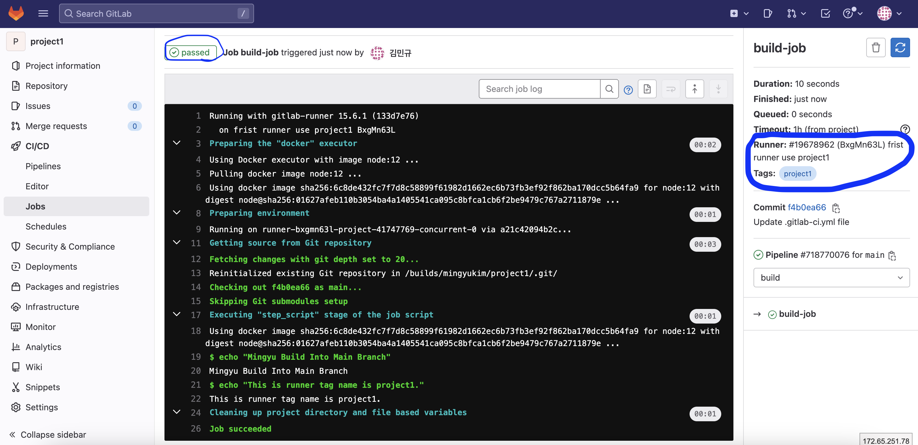 - gitlab-ci.yml 파일 수정후 commit change(push) 진행Job pass 확인하기