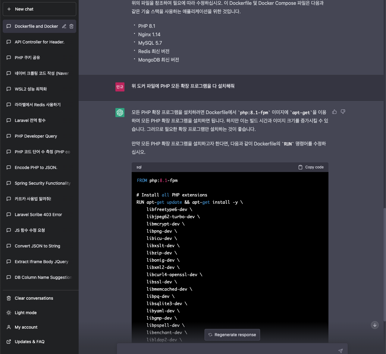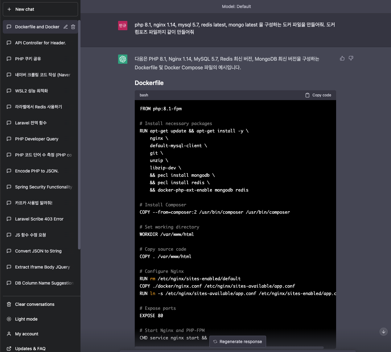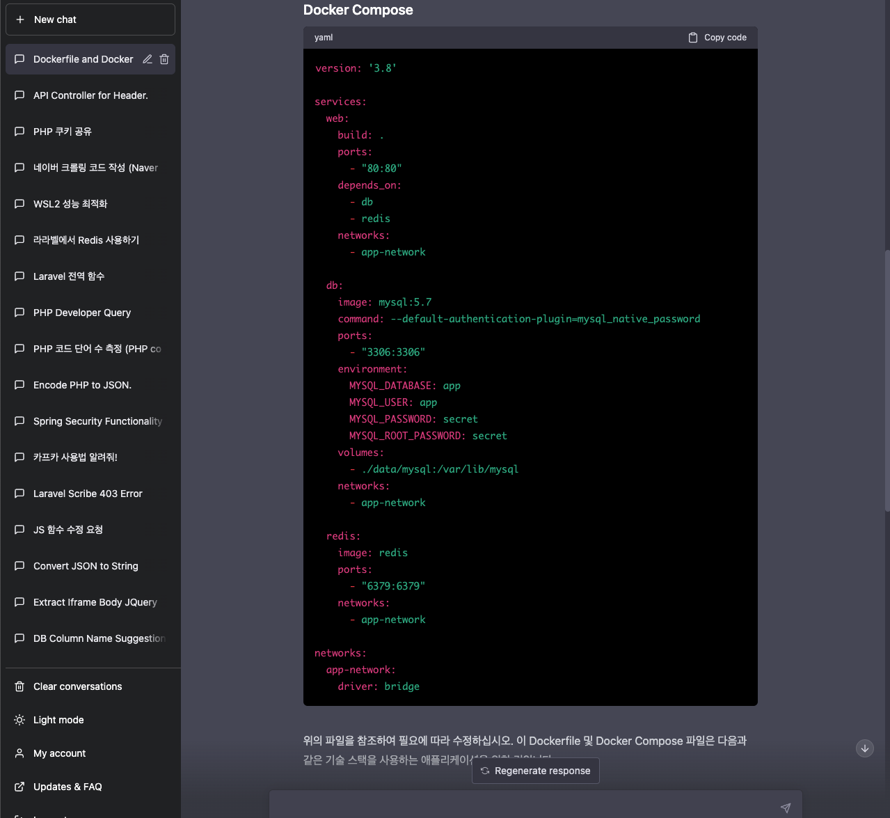 물론 완벽하진 않다. 2021년 까지의 데이터를 기반으로 만들어져 있기 때문에 하루가 멀다 하고 update 되는 IT 기술의 최신화된 답변은 어렵지만, 큰 그림에서 도안을 짜고, 셋팅을 하는 것에는 문제가 전혀 없다고 느꼈다.
