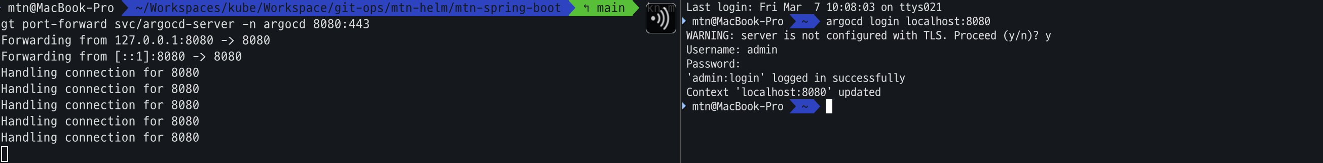 argocd login localhost:8080