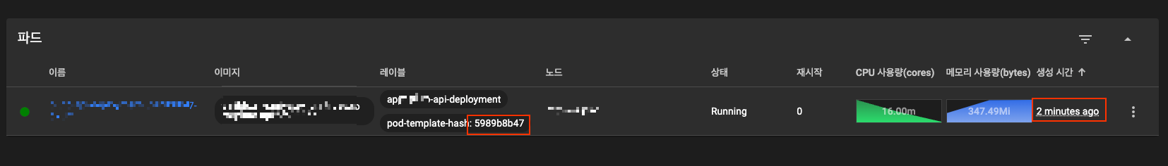 타깃 Cluster의 대시보드에 접속하거나 kubectl 명령으로 새롭게 생성된 파드가 정상적으로 동작하는지, 이미지는 최신 이미지 태그를 사용하였는지 등을 확인합니다.