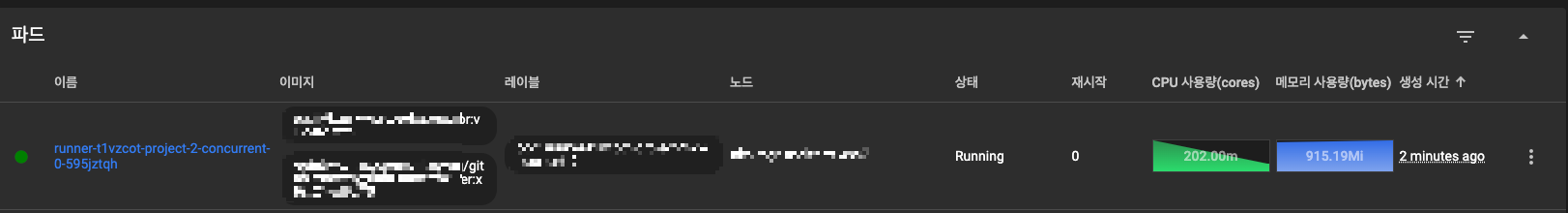 GitLab Runner가 생성한 새로운 Build Stage를 처리해 주는 파드가 생성된 것을 확인할 수 있습니다. Build Stage가 끝나면 Deploy Stage에 해당하는 Pod가 생성돼서 Develop Stage를 처리하게 됩니다.