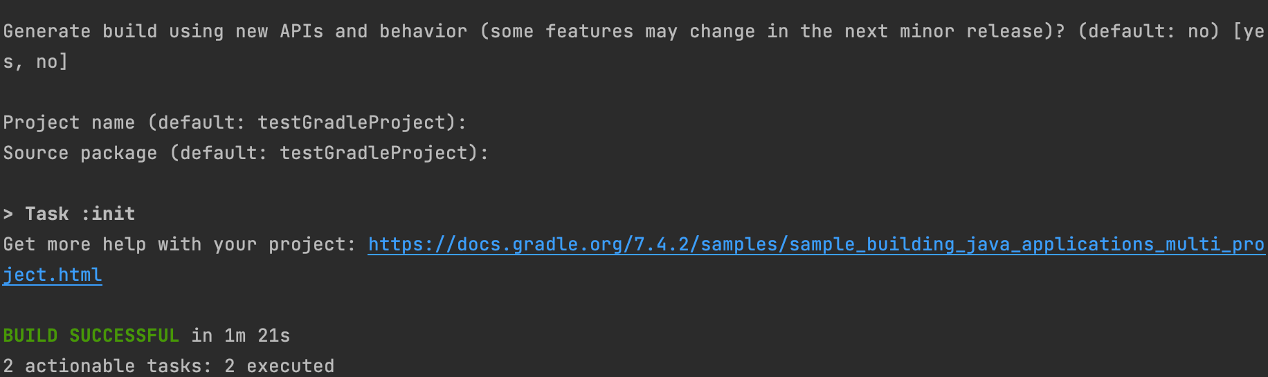 1. 프로젝트 폴더 생성 및 gradle init 명령어 실행