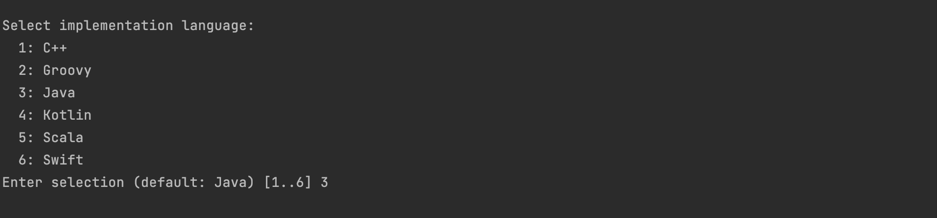 3. Project Language 선택란으로 Java 3번 혹은 default enter 진행