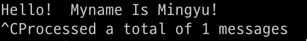 마찬가지로 kafka-console-consumer.sh의 경우 표준 출력(stdout)을 통해 메세지를 수신받기 위해 대기중일테니 ^C 를 입력하여 Process를 종료할 수 있다.