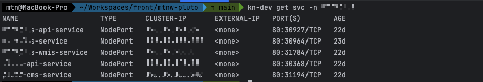 $ kubectl get svc -n namespace