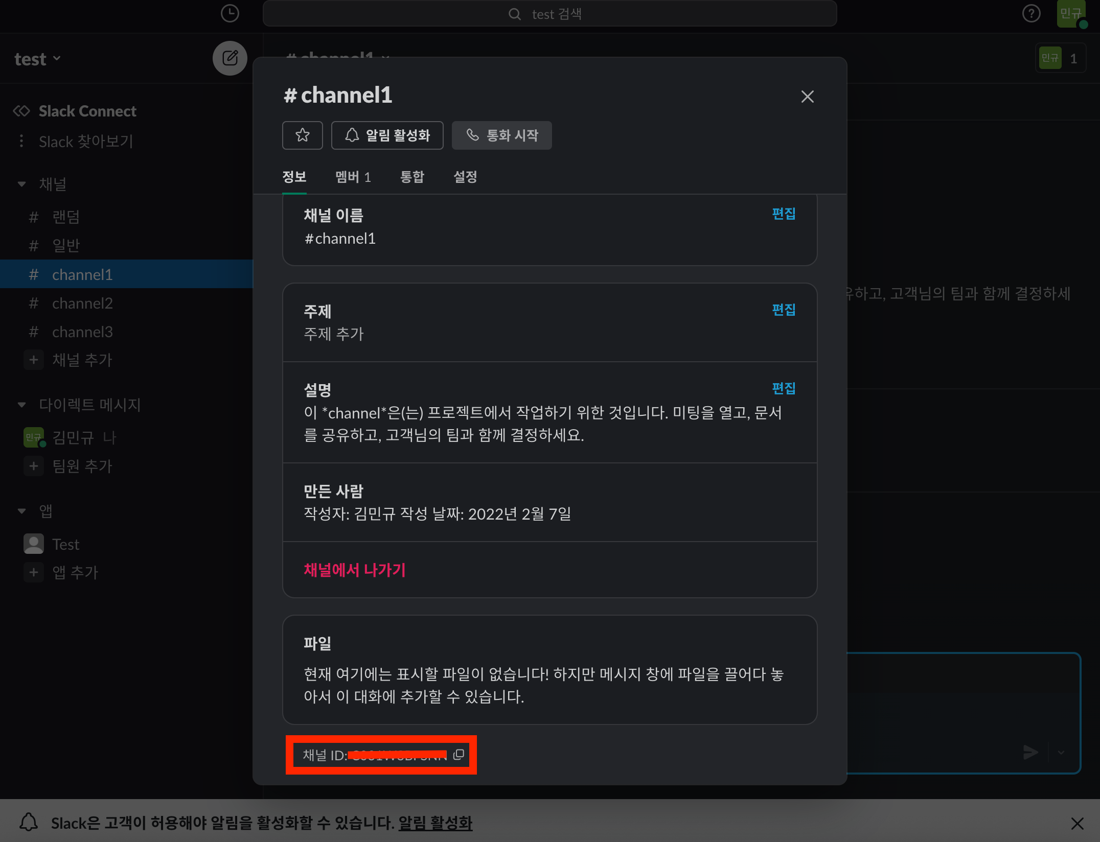 - 본인은 3개의 채널을 만들었으니 채널 ID 3개를 메모해 둡니다.