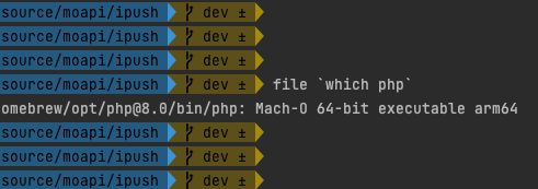 - [file `which php`] 명령어로 현재 설치되어있는 php가 어떤 프로세스에 적합한지 확인합니다.