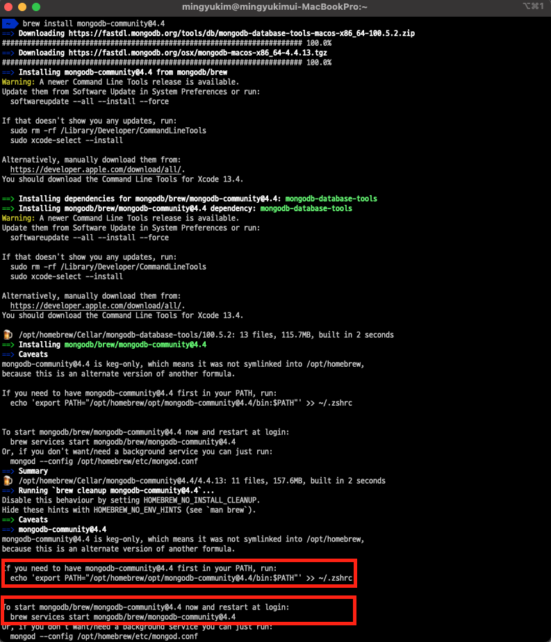 - brew install mongodb-community@4.4 명령어로 설치를 진행한다.