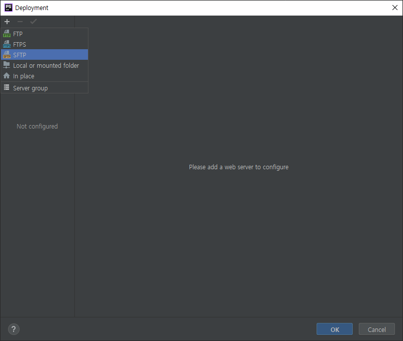 2. 좌측상단 + 버튼 - FTP or SFTP 클릭.