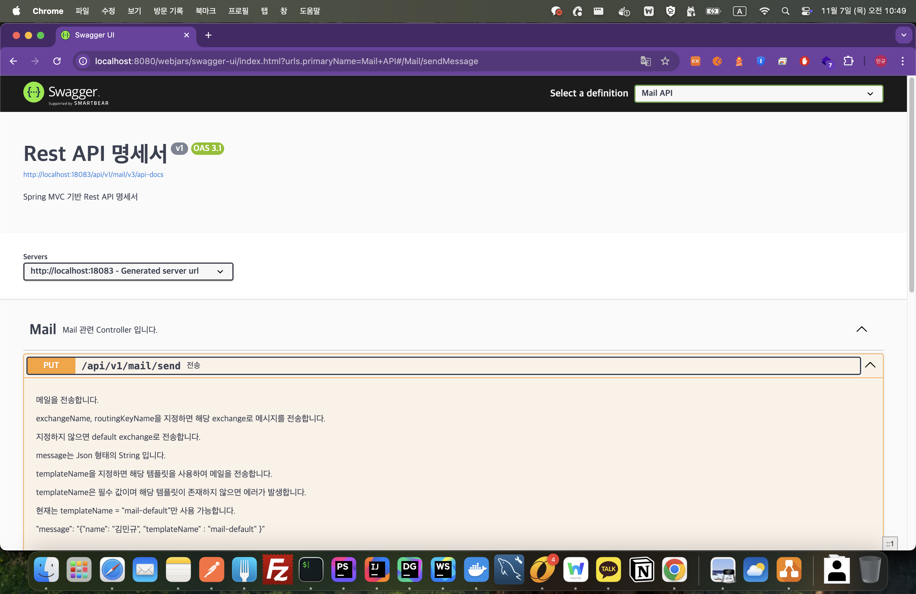 또한, 모든 MicroService (RestAPI 등)에 대한 명세서를 확인할 수 있도록 Swagger UI를 설치하여 각각의 서비스에 대한 API 문서 확인도 담당하는 역할을 부여하였습니다.