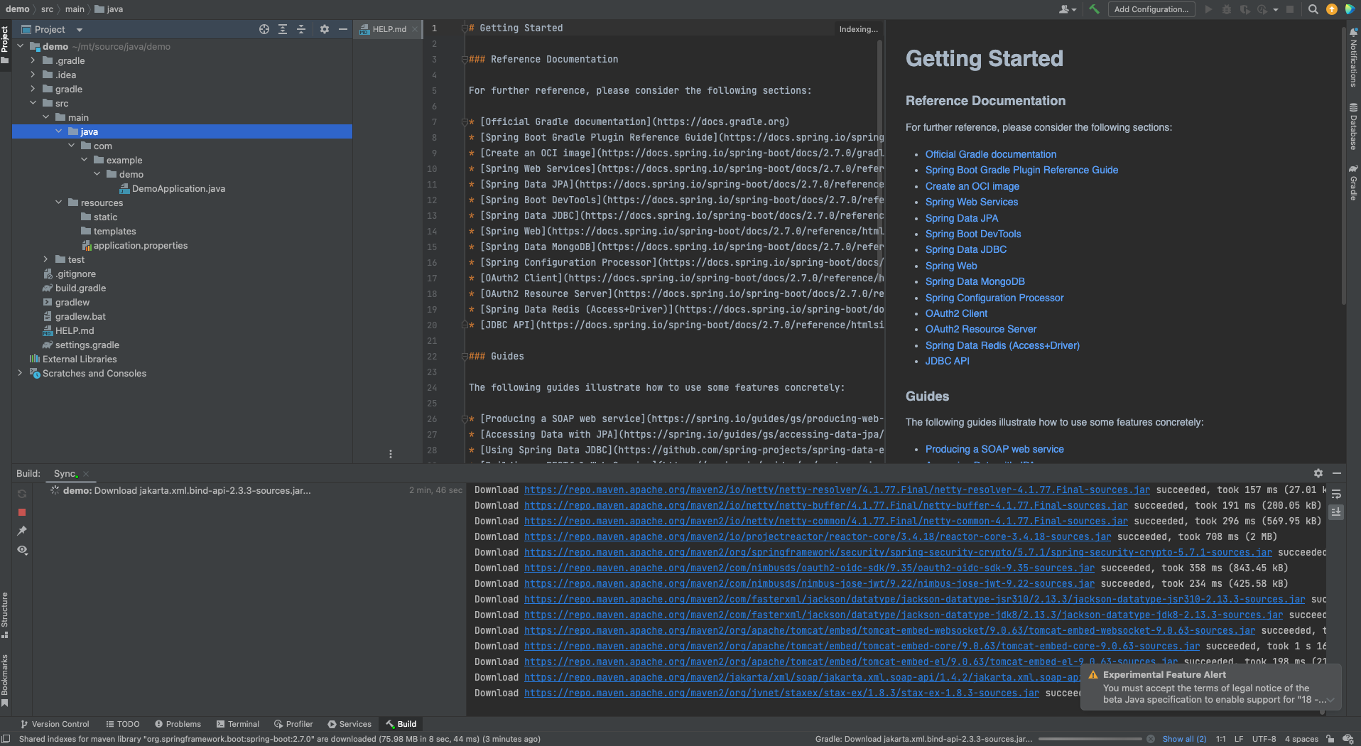 - 좌측 각 메뉴별 필요한 의존성을 자동으로 설정하여 앞에서 설정한 build tool에 dependencies를 자동으로 구성해줍니다.