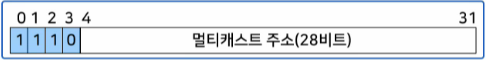 - 멀티캐스트 주소 ( 클래스 D IP 주소 )