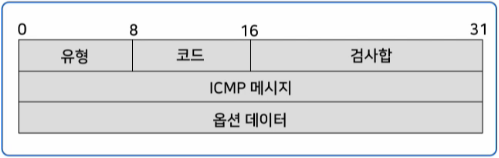 - 3. 검사합 (16bit) : 전체 ICMP 메시지의 오류 검사