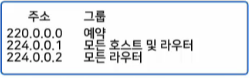 - 주소 범위 : 224.0.0.0 ~ 239.255.255.255