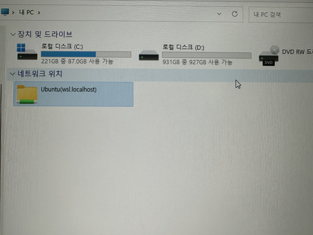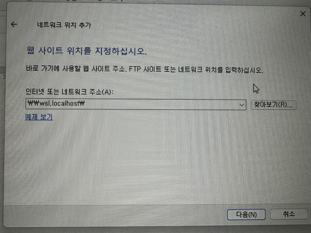 두 번째로 \\wsl\ 혹은 \\wsl.localhost\를 입력하고 찾아보기를 클릭하여 본인의 wsl2로 설치된 리눅스 혹은 우분투를 찾는다