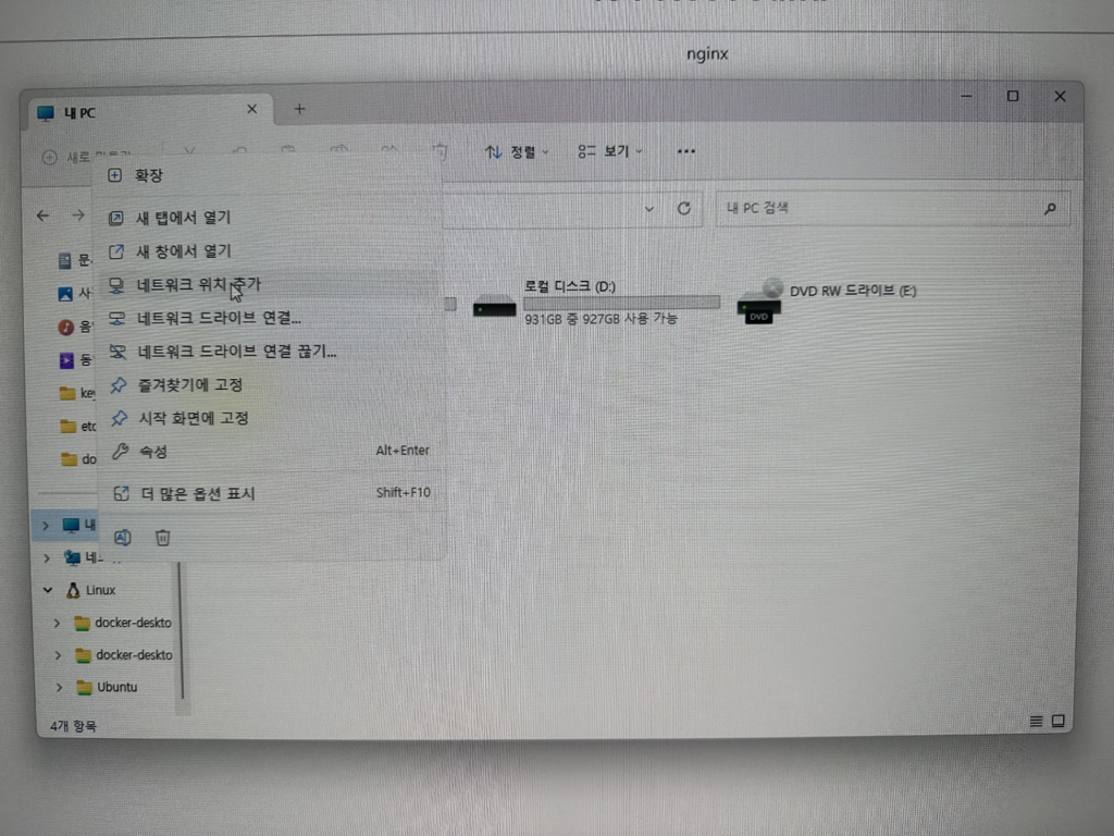 첫 번째로 내 PC 우클릭 > 네트워크 위치 추가를 클릭한다
