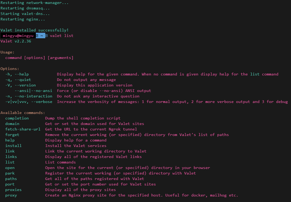 # valet 설치 확인